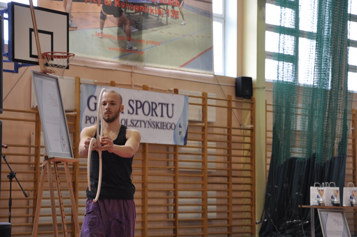 Publiczność została powitana... tangiem  Astora Piazzolli w wykonaniu Dywickiej Grupy Rozrywki pod kierunkiem Tomasza Michalaka (Powiatowa Szkoła Muzyczna w Dywitach). Imprezę oficjalnie otworzyła Małgorzata Chyziak. - Liczba zgłoszeń, jakie napłynęły w tym roku na nasz konkurs, świadczy o tym, że powiat olsztyński sportem stoi! Któż z nas wie, ile potu i łez trzeba wylać, ile godzin poświęcić, żeby osiągnąć sukces sportowy. Z pewnością wiedza to trzy osoby: trener, rodzin i zawodnik. Dlatego dziękuję wszystkim trenerom, instruktorom i opiekunom, którzy na co dzień zmagają się ze słabościami swoich podopiecznych, motywując ich do osiągnięcia celu.