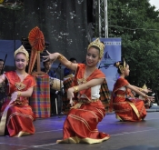 Po godz. 16 rozpoczęła się folklorystyczna część imprezy. Jako pierwszy i niestety jedyny, wystąpił zespół "Satit Silpakorn Folk Dance Group" z Tajlandii. Deszcz uniemożliwił prezentację Zespołu Pieśni i Tańca „Poleskije Zori” z Białorusi. Nie zdołał jednak przeszkodzić kontynuacji imprezy. Pod namiotem zabrzmiały dźwięki warszawskiej formacji Trace, grającej muzyke amerykańską z pogranicza country, bluesa, southern rocka i folk.