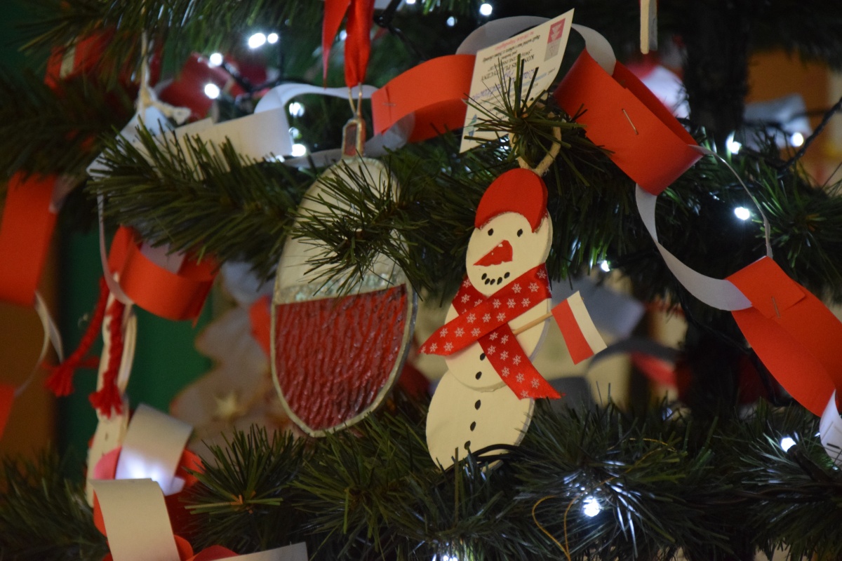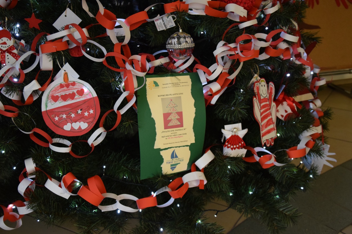 W przeddzień Mikołajek w Starostwie Powiatowym w Olsztynie stanęła choinka. Nietypowa, bo... biało-czerwona. Ozdoby na świąteczne drzewko zostały przygotowane przez uczestników konkursu plastycznego "Świąteczne inspiracje" zorganizowanego przez Specjalny Ośrodek Szkolno-Wychowawczy w Żardenikach w ramach obchodów 100-lecia odzyskania przez Polskę niepodległości.