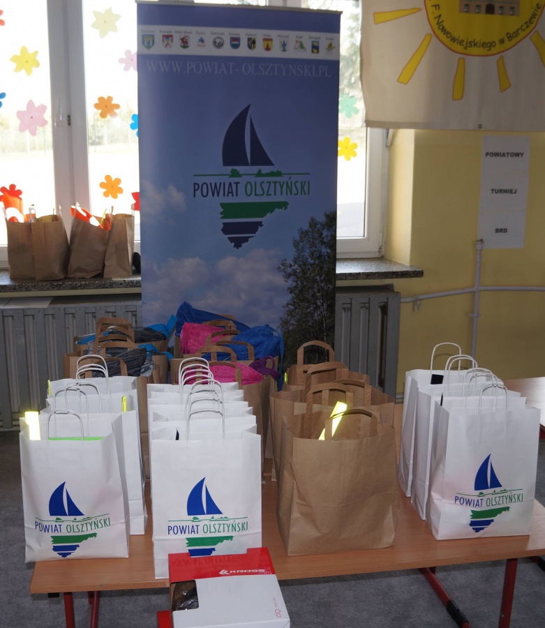 Życzymy powodzenia podczas Wojewódzkiego Finału Turnieju Bezpieczeństwa Ruchu Drogowego. Puchary oraz nagrody indywidualne ufundowali: starosta olsztyński Andrzej Abako, burmistrz Barczewa Andrzej Maciejewski oraz dyrektor Wydziału Zarządzania Kryzysowego Zbigniew Załuski.