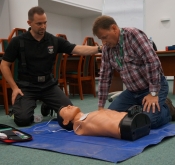Szkolenie ma charakter praktyczny, każdy urzędnik uczy się jak wykonać prawidłowo resuscytację