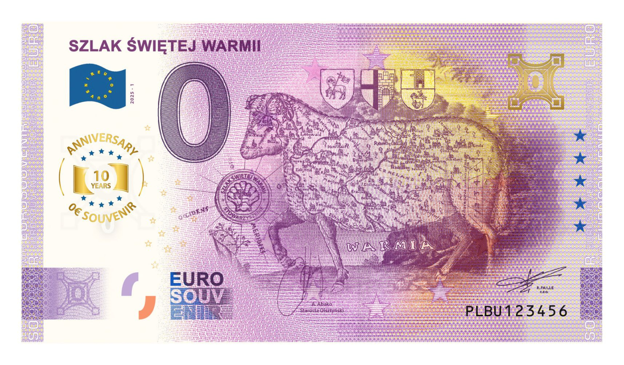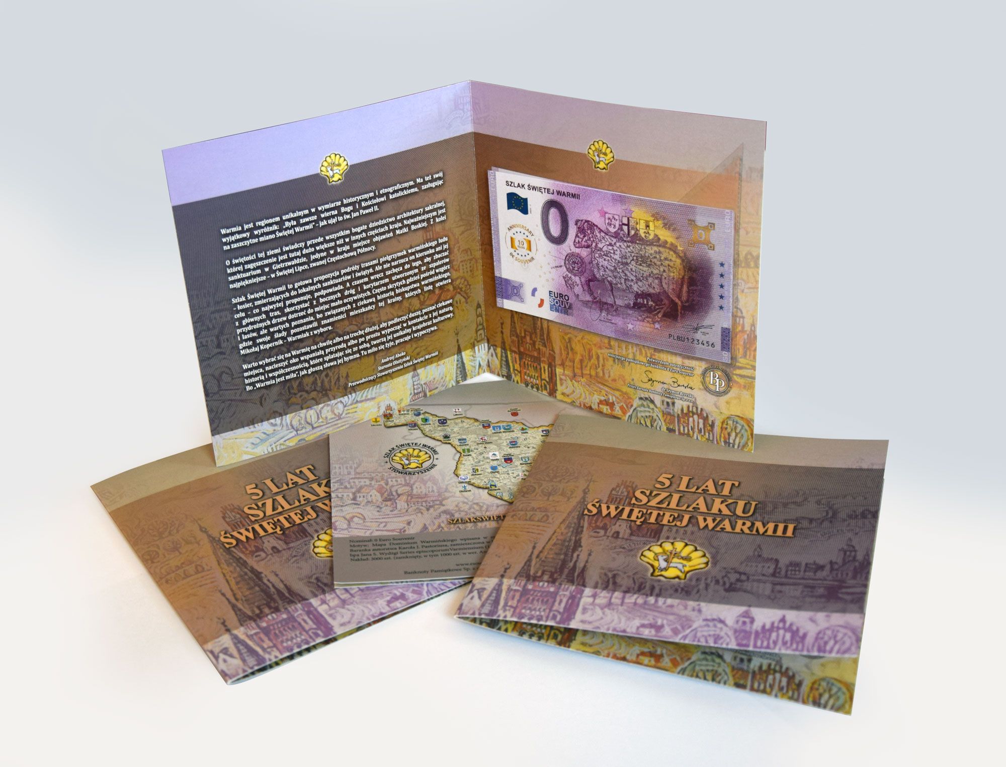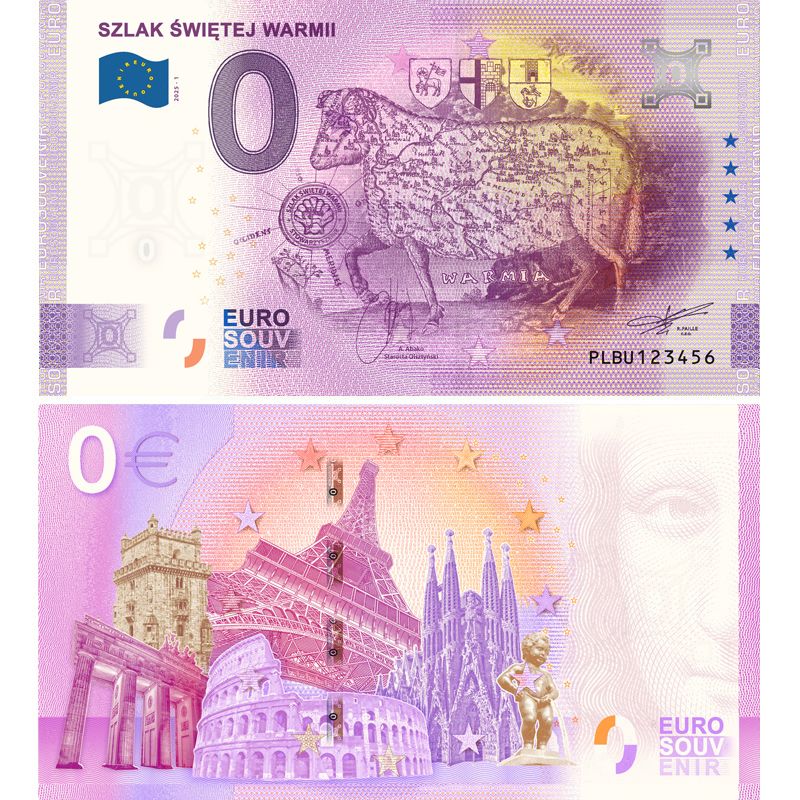 W sklepie internetowym esouvenir.pl można już zamawiać banknoty pamiątkowe 0 Euro Souvenir wyemitowane z okazji pięciolecia projektu Szlak Świętej Warmii. Choć nie są środkiem płatniczym i jedynie wyglądem przypominają oryginalną walutę europejską, dzięki swojej atrakcyjnej formie cieszą się zainteresowaniem zarówno wśród kolekcjonerów, jak i turystów. Ideą projektu jest bowiem promowanie atrakcji turystycznych, wydarzeń czy wybitnych osobistości.