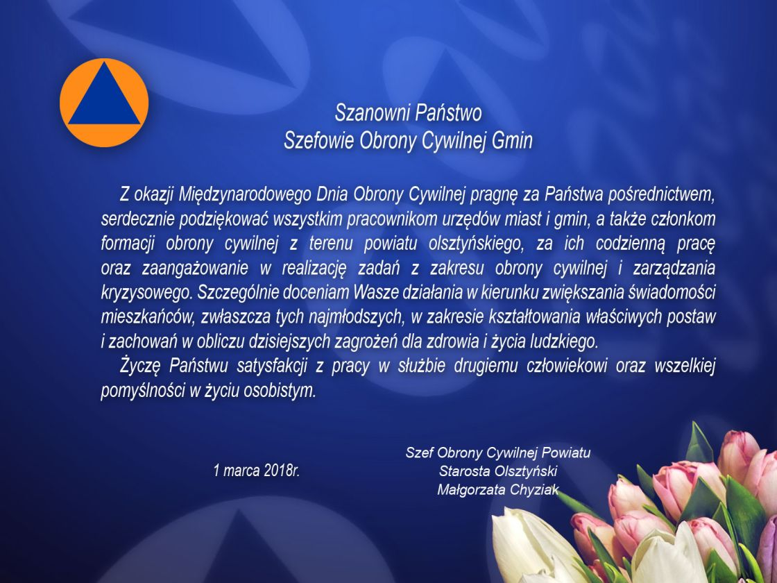 Życzenia Starosty Olsztyńskiego z okazji Międzynarodowego Dnia Obrony Cywilnej