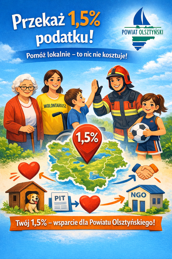 Okres rocznych rozliczeń podatkowych to nie tylko obowiązek wobec fiskusa, ale też realna szansa, by zrobić coś dobrego dla swojego najbliższego otoczenia. Przekazując 1,5% podatku dochodowego, mieszkańcy powiatu olsztyńskiego mogą wesprzeć lokalne organizacje pozarządowe – fundacje i stowarzyszenia, które na co dzień działają tuż obok nas, odpowiadając na konkretne potrzeby mieszkańców.