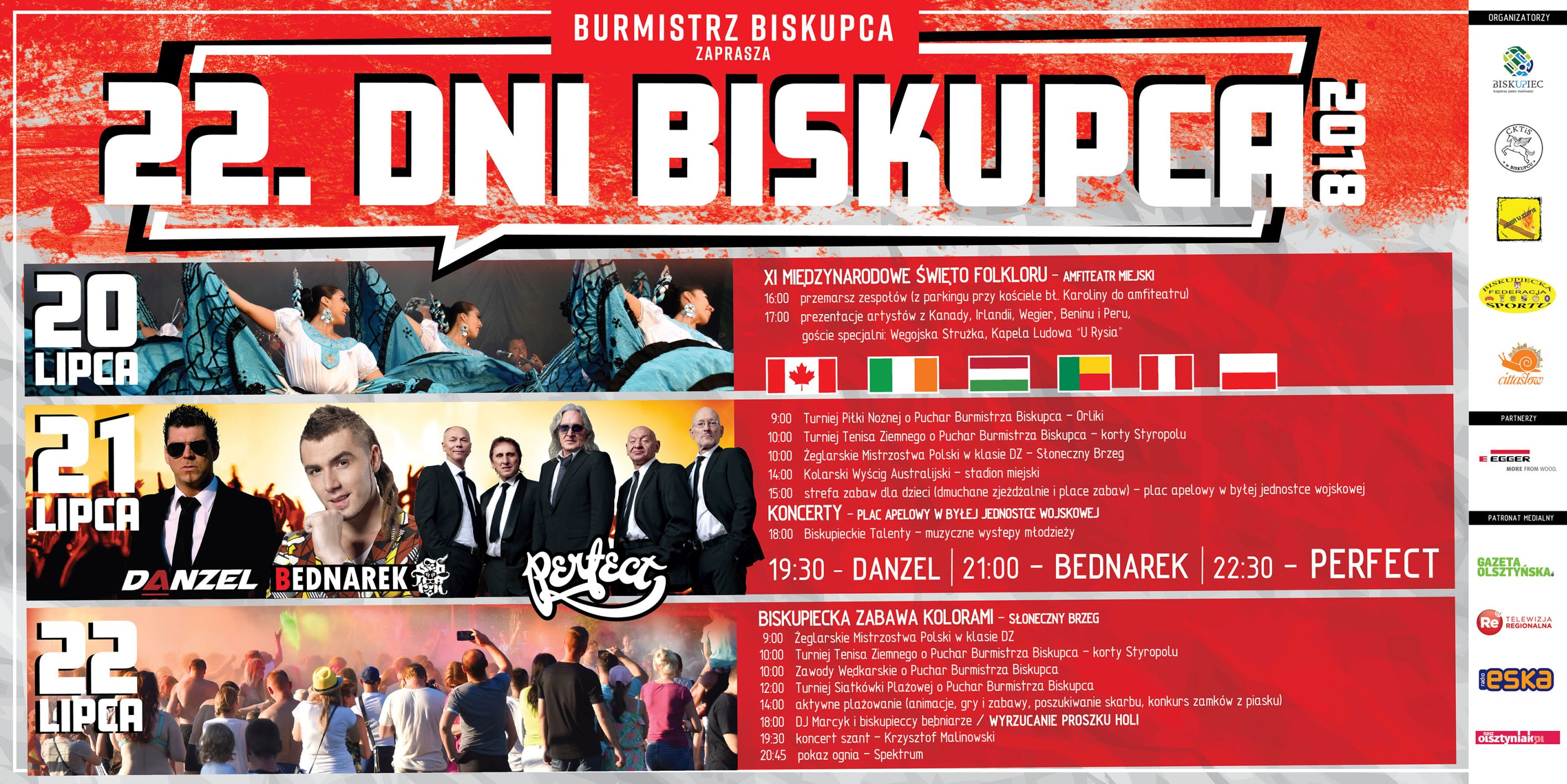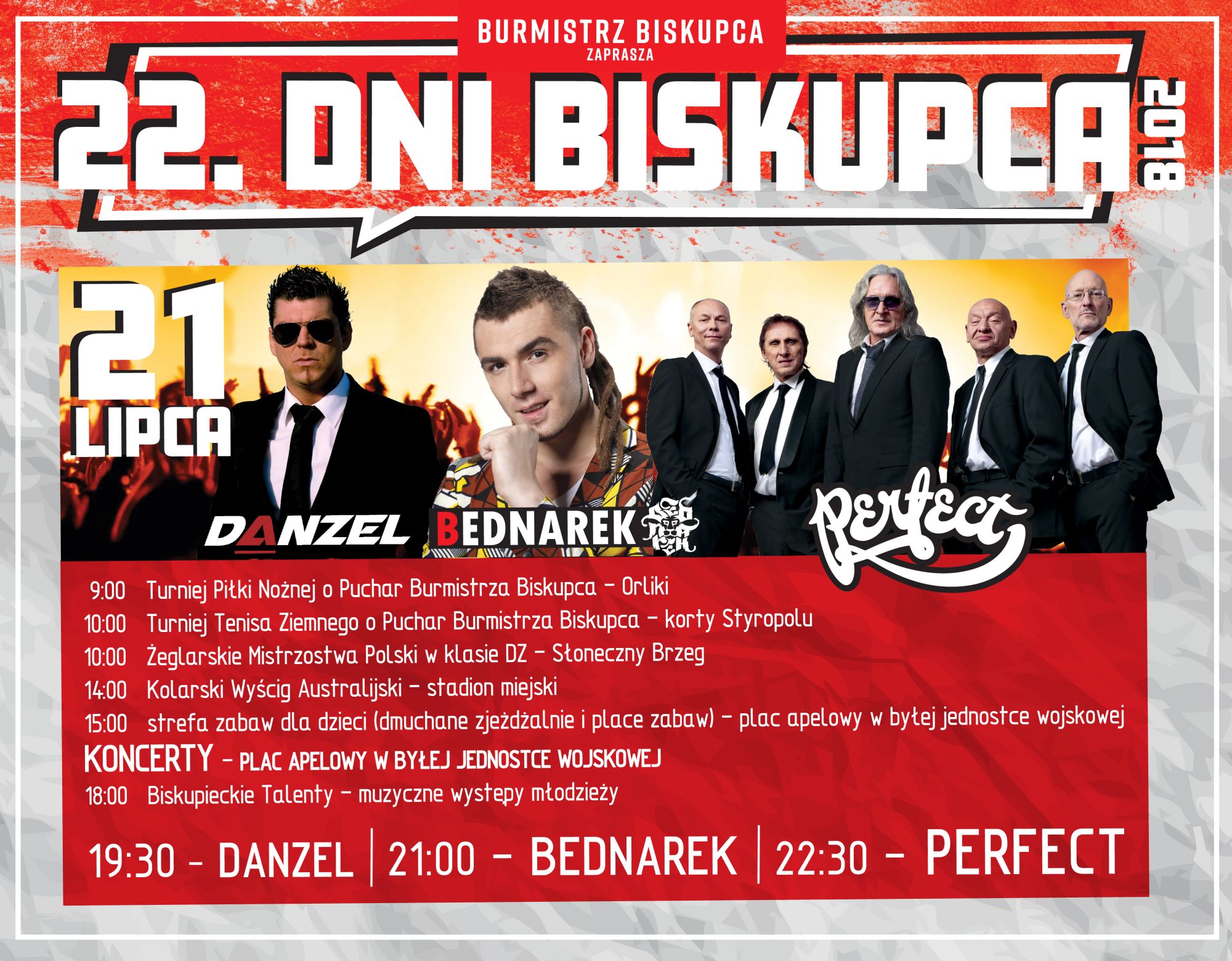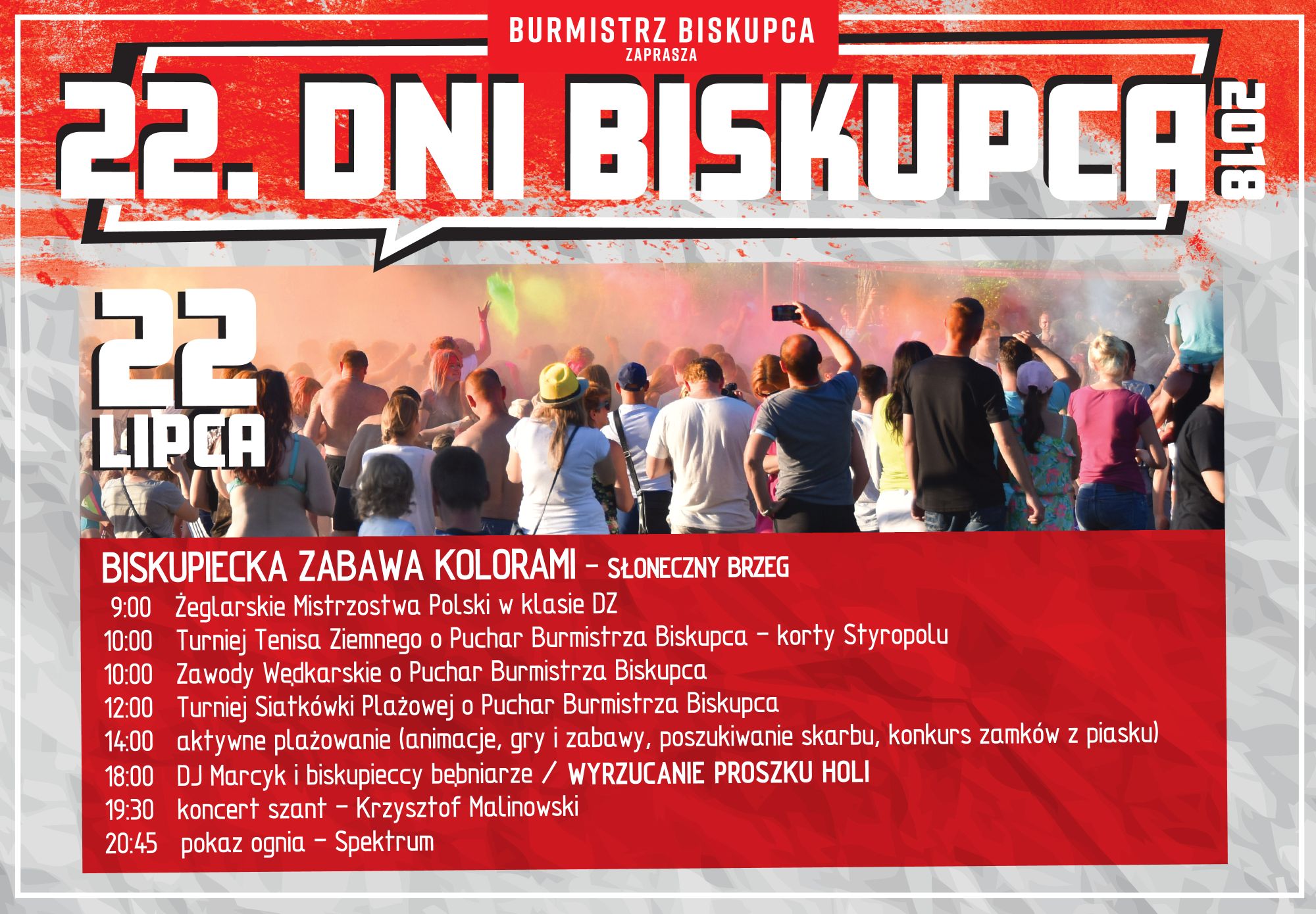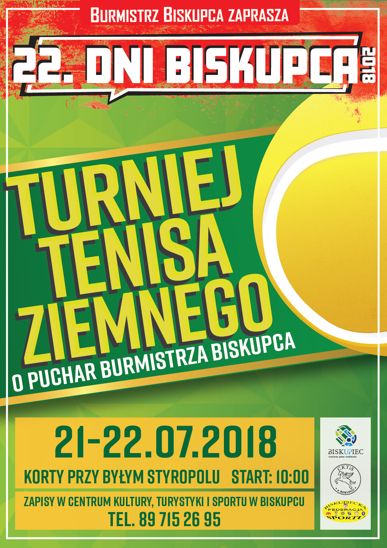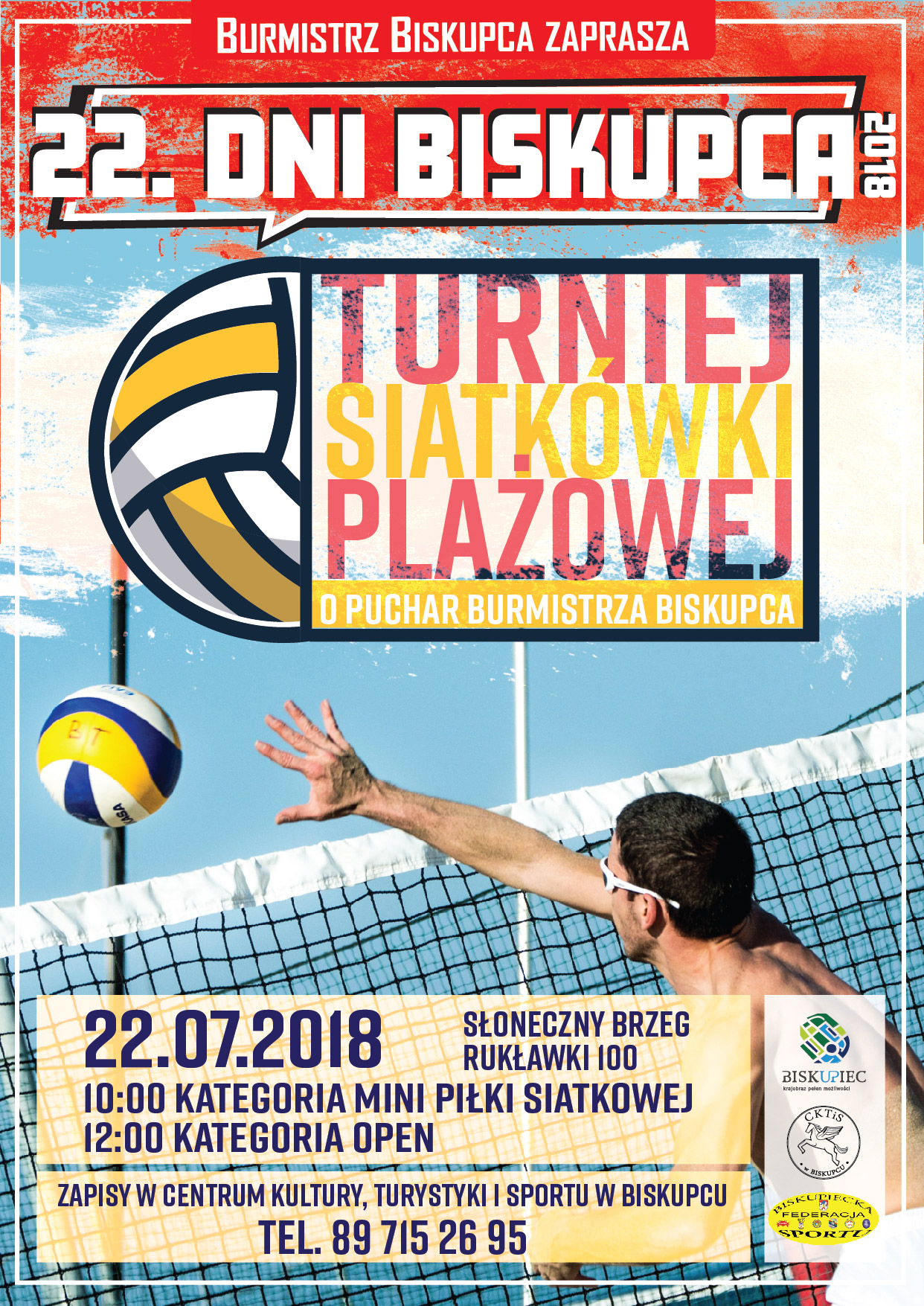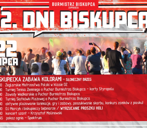Serdecznie zapraszamy na 22. Dni Biskupca, które odbędą się 20 - 22 lipca. Organizatorem imprezy jest Burmistrz Biskupca oraz Centrum Kultury, Turystyki i Sportu w Biskupcu. Podczas imprezy odbędą się m.in. Zawody Wędkarskie o Puchar Burmistrza Biskupca, Turniej Siatkówki Plażowej o Puchar Burmistrza Biskupca, Turniej Tenisa Ziemnego o Puchar Burmistrza Biskupca.