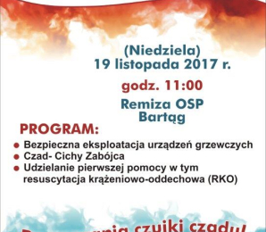 Prelekcję dotyczącą zagrożeń związanych z tlenkiem węgla oraz właściwą eksploatacją urządzeń grzewczych poprowadzi funkcjonariusz z Komendy Miejskiej Państwowej Straży Pożarnej w Olsztynie.