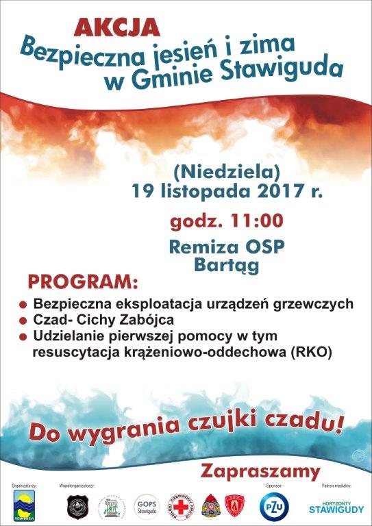 Celem akcji jest rozpropagowanie wśród mieszkańców Gminy Stawiguda wiedzy n/t zasad bezpieczeństwa w trakcie sezonu grzewczego. Zwrócenie szczególnej uwagi na zagrożenia występujące w związku z niewłaściwą eksploatacją urządzeń grzewczych i zagrożeń związanych z emisją tlenku węgla (czadu) oraz ograniczenie zdarzeń związanych z emisją tlenku węgla na terenie gminy.