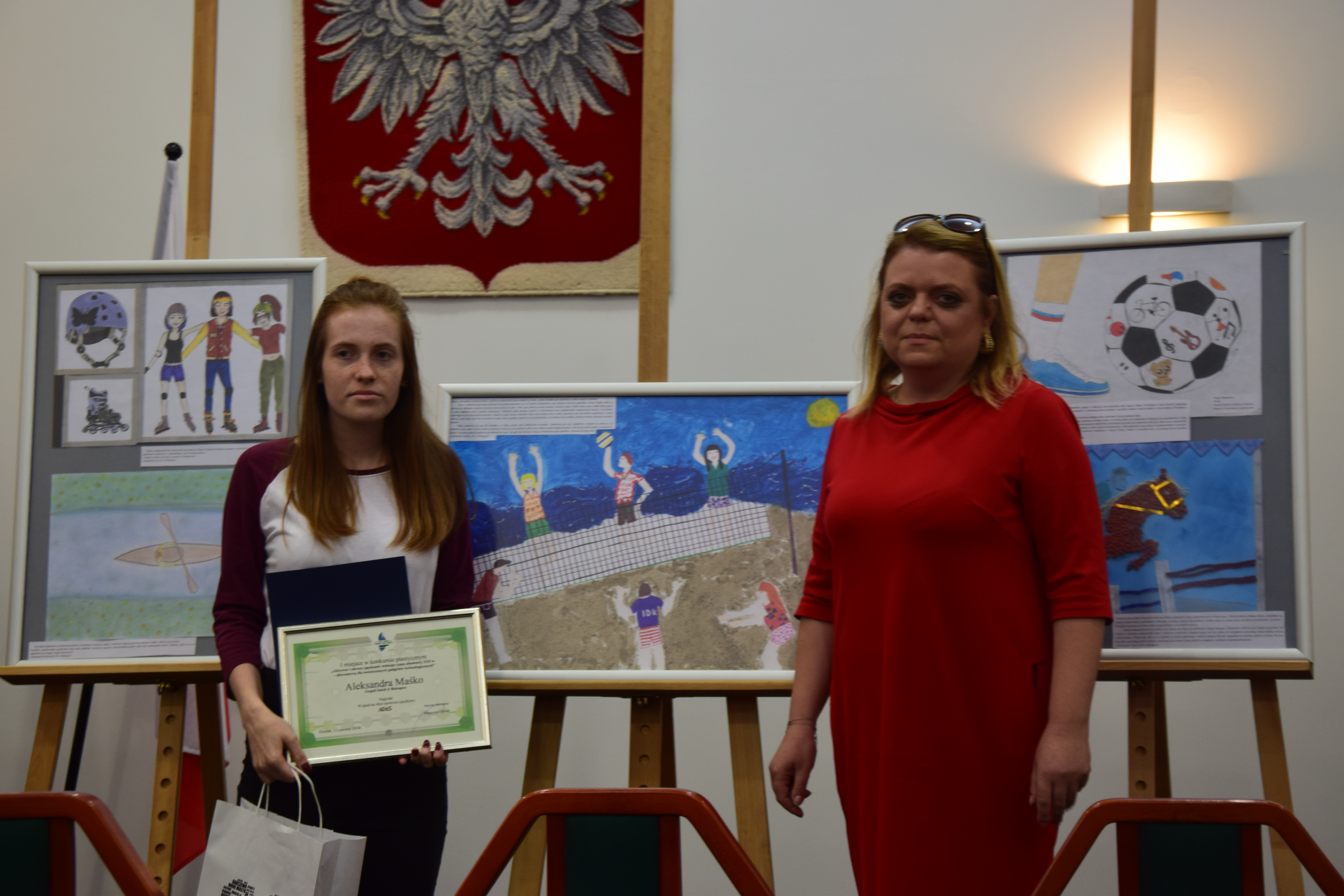 - Wasze prace są ciekawe, przygotowane w różnych technikach. Z kolei opisy – u jednych krótsze, u innych bardziej rozbudowane, niemniej równie ciekawe. Chcę jednak podkreślić, że swoimi pracami udowadniacie, że stereotyp młodzieży żyjącej tylko smartfonem, mediami społecznościowymi, grami i internetem jest mitem. W rzeczywistości jesteście nie tylko uzdolnieni, ale też świadomi wartości wynikających z prowadzenia zdrowego i aktywnego trybu życia – mówiła starosta olsztyński Małgorzata Chyziak, która spotkała się z młodzieżą i wręczyła upominki oraz nagrody.