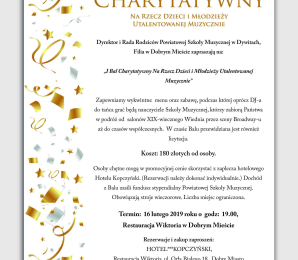 Bilet wstępu na bal kosztuje 180 zł, w cenie jest zarówno menu, jak też kwota, która zasili fundusz stypendialny Powiatowej Szkoły Muzycznej. Osoby chętne mogą skorzystać także z zaplecza hotelowego w promocyjnej cenie. Obowiązują stroje wieczorowe.