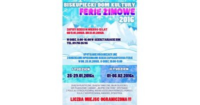 Ferie w Biskupieckim Domu Kultury mają już wieloletnią tradycję. W tym roku odbyły się po raz 16. Tylko, a może aż 65 dzieci mogło ciekawie, na zorganizowanych zajęciach spędzić wolne dni. Czas upływał uczestnikom ferii dynamicznie, bez ekranu komputera, iPod’a, czy telefonu komórkowego. I jak dzieciaki oceniły – nie był...