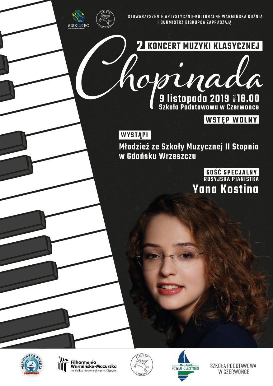 Stowarzyszenie Artystyczo-Kulturalne Warmińska Kuźnia wraz z Burmistrzem Biskupca zapraszają w sobotę 9 listopada na 2 Koncert Muzyki Klasycznej "Chopinada".