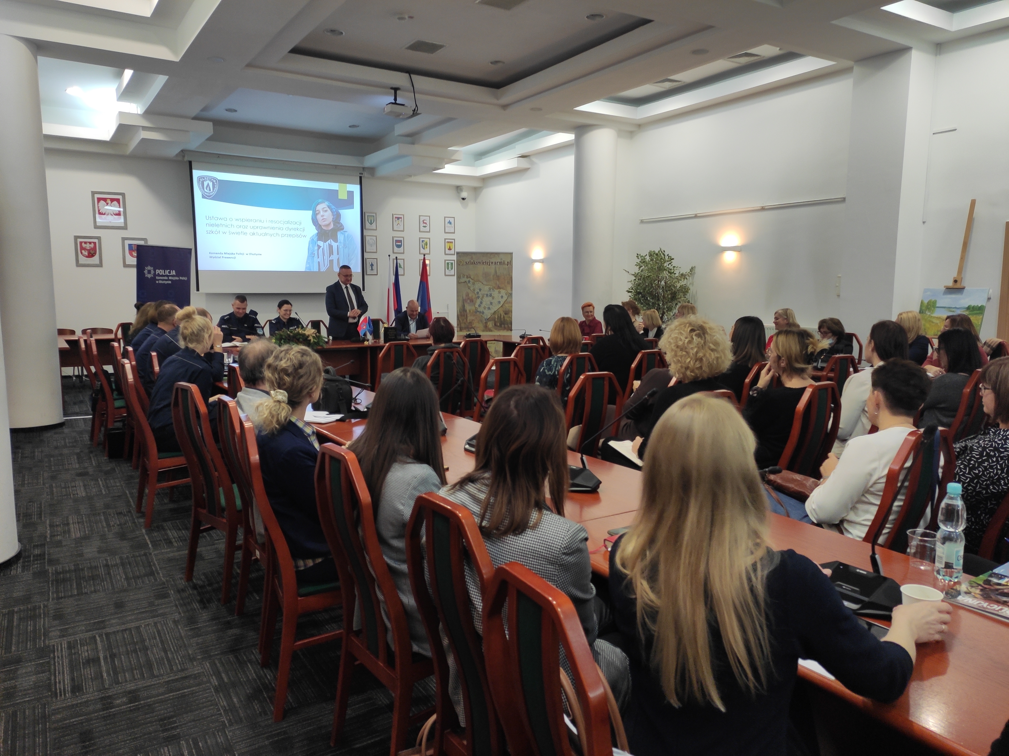 Po wypowiedziach prelegentów nastąpiła możliwość wzięcia czynnego udziału w panelu dyskusyjnym. Uczestnicy spotkania mogli zastanowić się wspólnie, jak w przyszłości szybciej i skuteczniej reagować na niebezpieczeństwa, które napotykają na swojej drodze dzieci i młodzież, a także wskazać konkretne zagrożenia oraz zaplanować działania prewencyjne, profilaktyczne oraz zapobiegawcze.