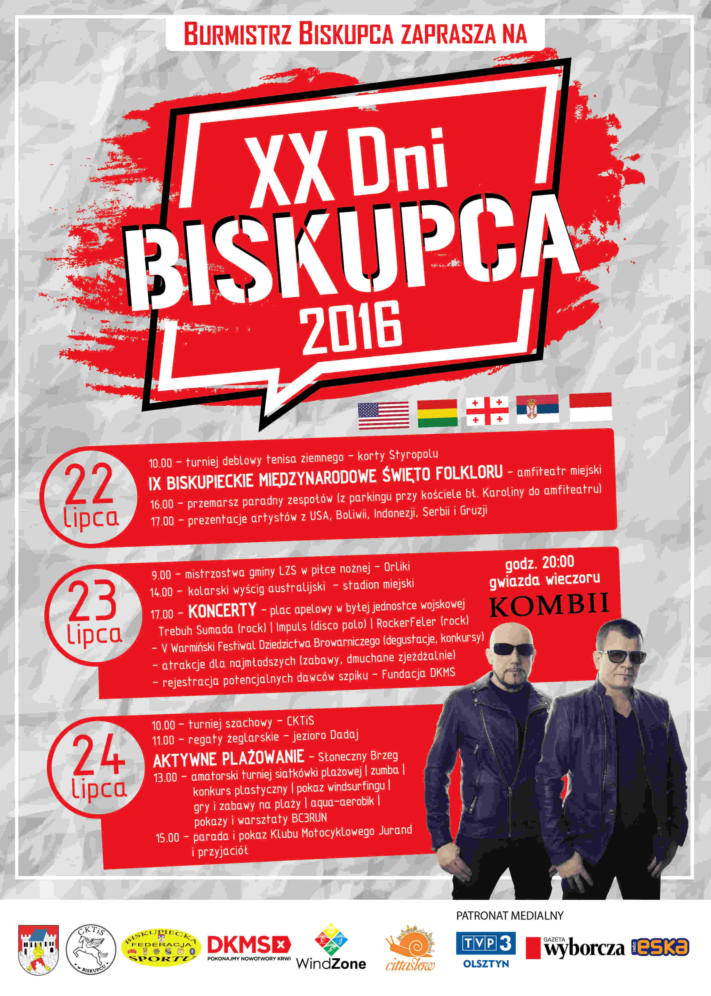 Gmina Biskupiec zaprasza w piątek 22 lipca na 20. Dni Biskupca. Święto miasta potrwa 3 dni.