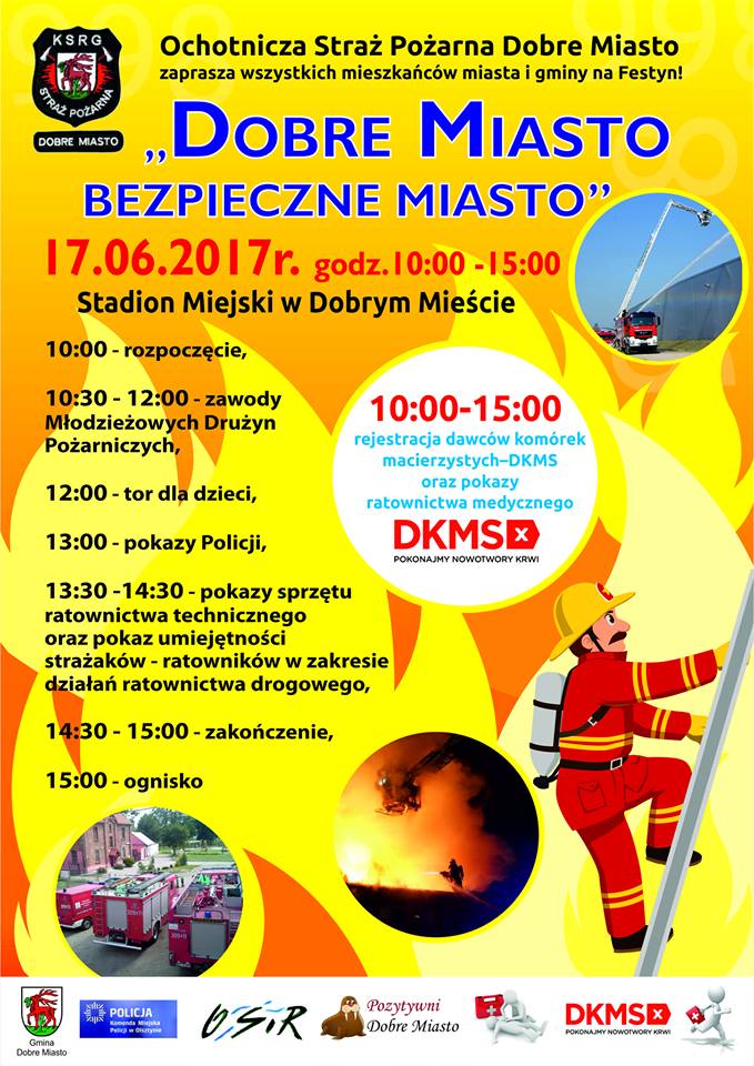 Gmina Dobre Miasto wraz z Ochotniczą Strażą Pożarną zapraszają w sobotę 17 czerwca na festyn "Dobre Miasto'-bezpieczne miasto".