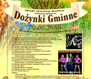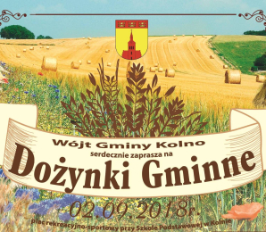 Wójt Gminy Kolno zaprasza 2 września na br. Dożynki Gminne, które odbędą się na placu rekreacyjno-sportowym przy Szkole Podstawowej w Kolnie.