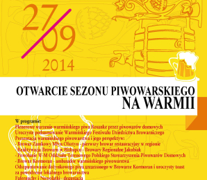 Powiat Olsztyński wspólnie z Muzeum Warmii i Mazur oraz partnerami zapraszają na otwarcie sezonu piwowarskiego na Warmii, które rozpocznie się w sobotę 27 września o godz. 12 na olsztyńskim zamku. W programie m.in. warzenie warmińskiego piwa Rosanke, pokazanie potencjału regionalnego browarnictwa, czy odszpuntowanie beczki z dożynkowym piwem. Spotkanie odbędzie się w Sali Kromera na olsztyńskim zamku.