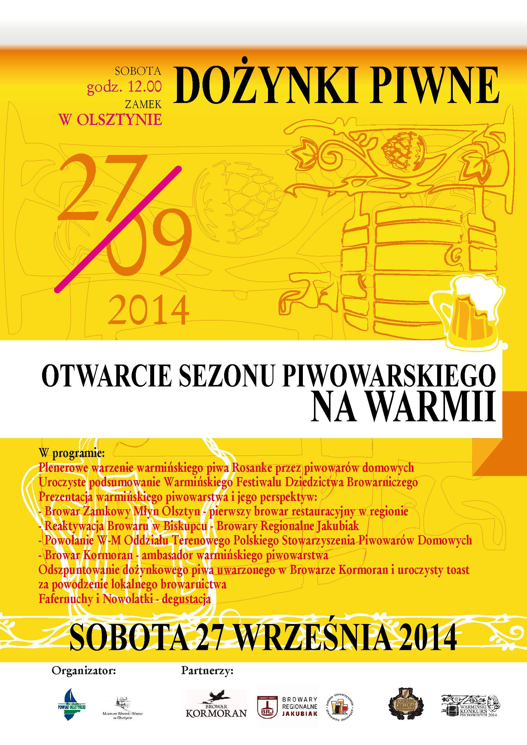 W czasie spotkania na zamku domowi piwowarzy uwarzą warmińskie piwo Rosanke według zwycięskiej receptury z tegorocznego II Warmińskiego Konkursu Piw Domowych. Uczestnicy będą mogli tez spróbować najsmaczniejszych przekąsek piwnych, czyli słodkich fafernuchów i słonych nowolatek. Odszpuntowana zostanie także beczka z dożynkowym piwem Browaru Kormoran.