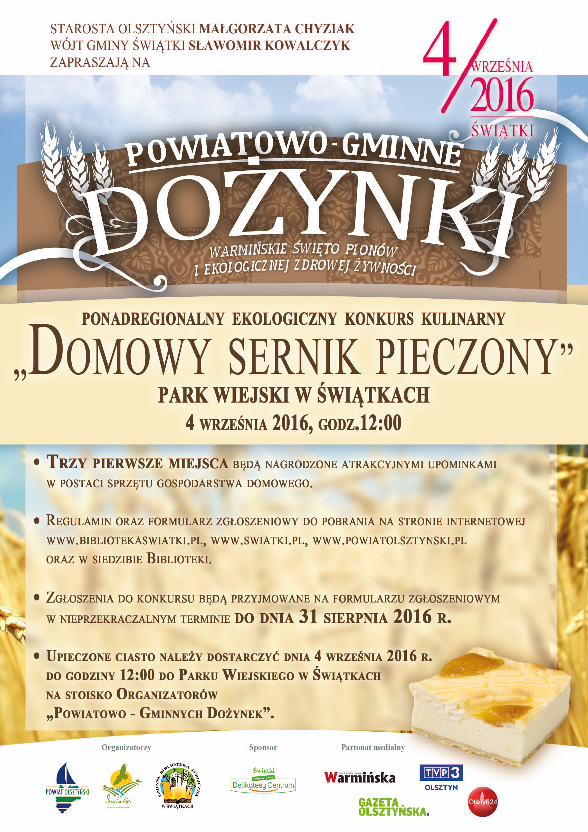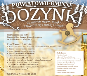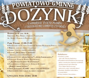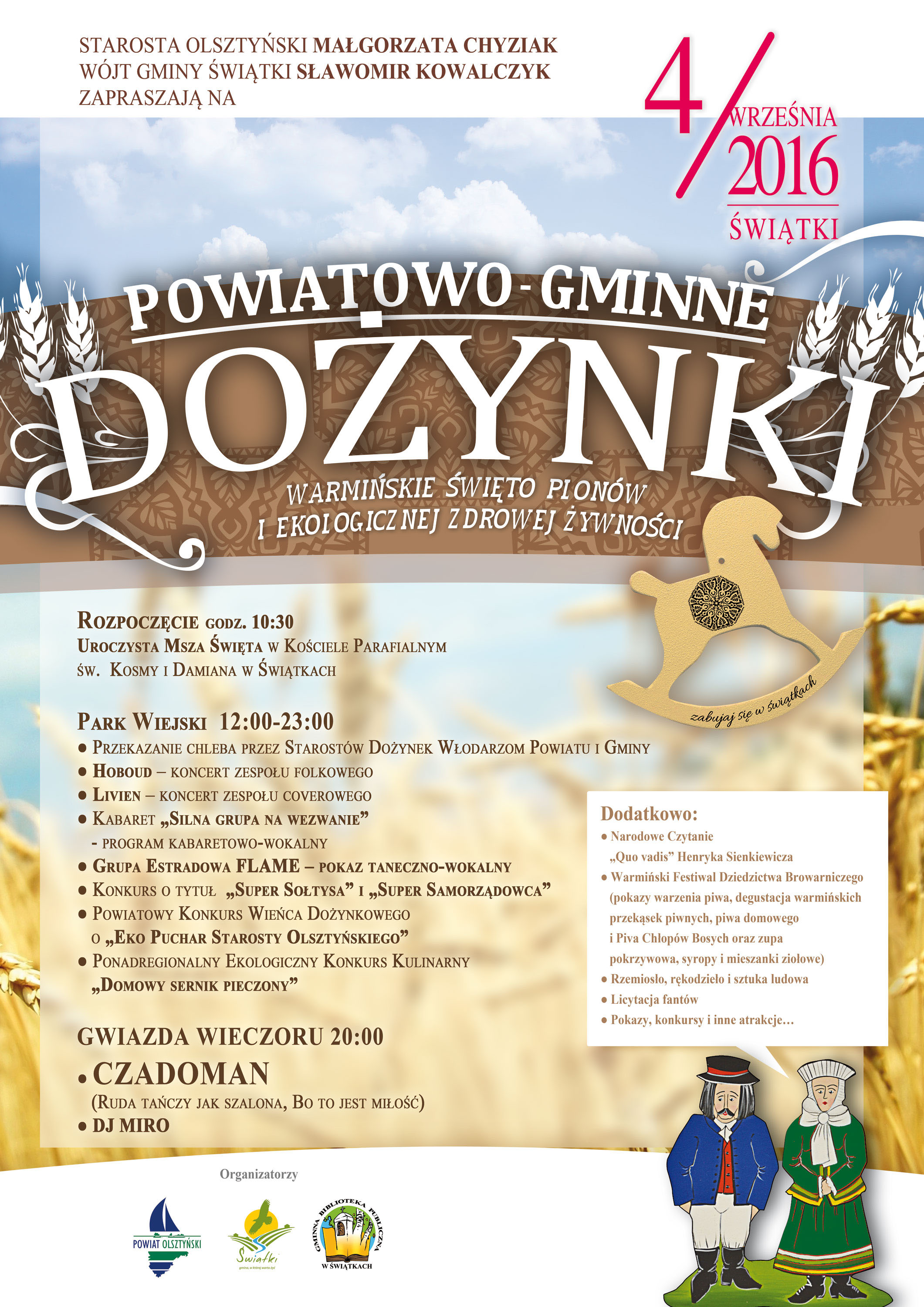 Starosta Olsztyński wraz z Wójtem Gminy Świątki zapraszają na Dożynki Powiatowo-Gminne czyli Warmińskie Święto Plonów i Ekologicznej Zdrowej Żywności.