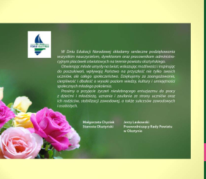 Prosimy o przyjęcie życzeń niesłabnącego entuzjazmu do pracy z dziećmi i młodzieżą, uznania i zaufania ze strony uczniów oraz ich rodziców, stabilizacji zawodowej, a także sukcesów zawodowych i osobistych.