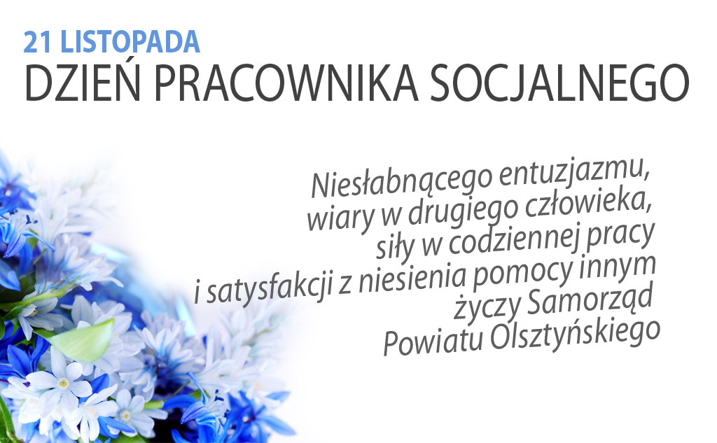 21 listopada swoje święto obchodzą pracownicy socjalni. Ich zawód wiąże się z niesieniem pomocy tym, którzy z różnych powodów znaleźli się w trudnej sytuacji życiowej. Wymaga odporności psychicznej, przy jednoczesnej empatii, odwagi w podejmowaniu decyzji i umiejętności pracy w środowiskach często niebezpiecznych dla nich samych, bo dotkniętych przemocą i uzależnieniami. Pracownik socjalny bywa przewodnikiem, opiekunem, doradcą mobilizującym do podjęcia działań i wyjścia z trudnej sytuacji. Dziękując za codzienną walkę o zachowanie godności drugiego człowieka, życzymy wszystkim pracownikom socjalnym zdrowia, optymizmu i satysfakcji z wykonywania swojej pracy.