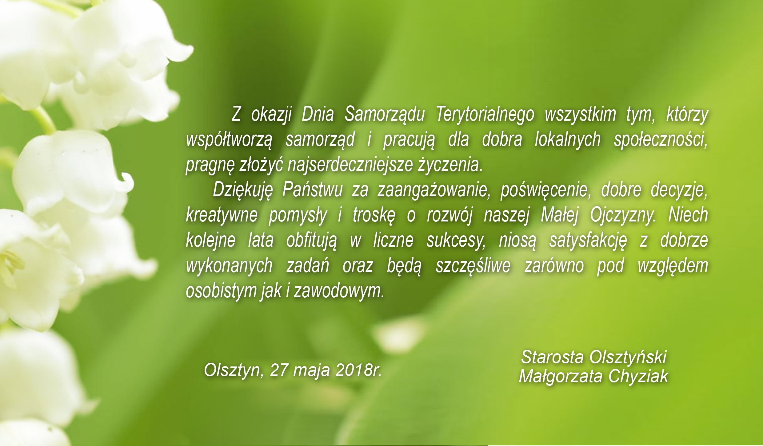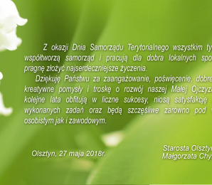 Z tej okazji starosta olsztyński Małgorzata Chyziak składa serdecznie życzenia wszystkim samorządowcom z terenu powiatu.