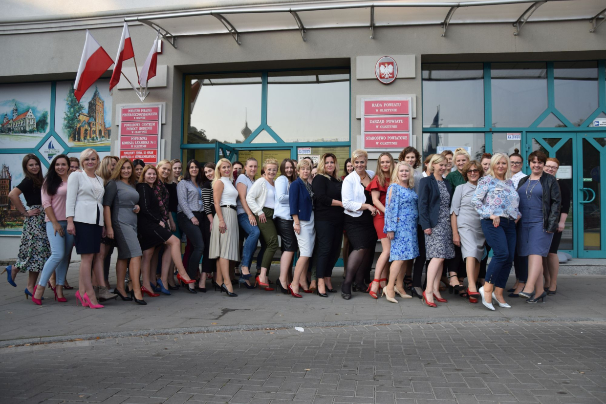 Damska część załogi Starostwa Powiatowego w Olsztynie wspomagana przez panie z Powiatowej Poradni Psychologiczno-Pedagogicznej i Powiatowego Centrum Pomocy Rodzinie włączyła się do akcji #Dzień Szpilek.