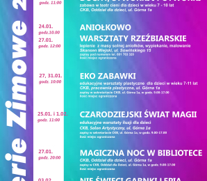 27 stycznia, godz. 20:00 – CKB, Oddział dla dzieci, ul. Górna 1aMagiczna Noc w biblioteceInformacje i zapisy w sekretariacie CKB w godz. 9:00- 17:00