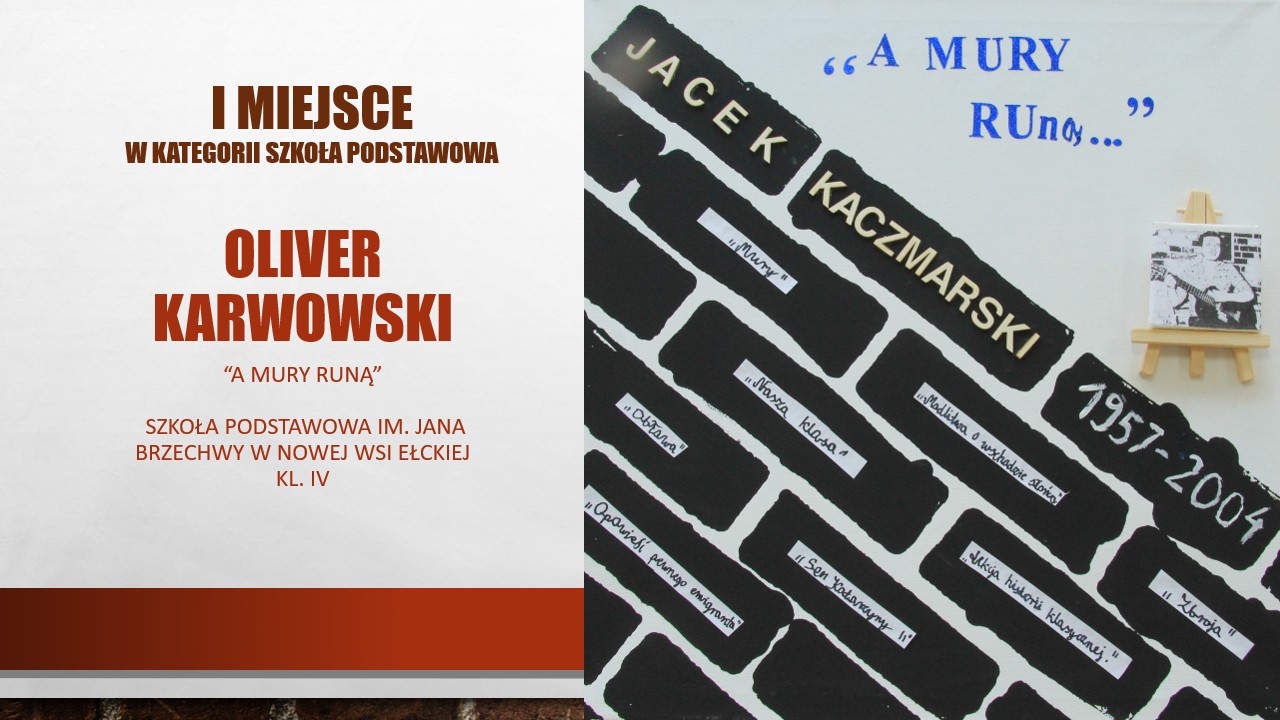 Oliver Karwowski – „A mury runą” - Szkoła Podstawowa im. Jana Brzechwy w Nowej Wsi Ełckiej; kl. IV