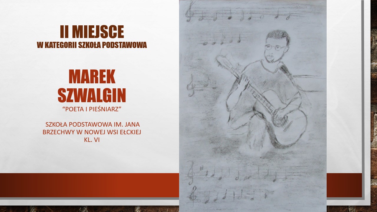 Marek Szwalgin – „Poeta i pieśniarz” - Szkoła Podstawowa im. Jana Brzechwy w Nowej Wsi Ełckiej; kl. VI