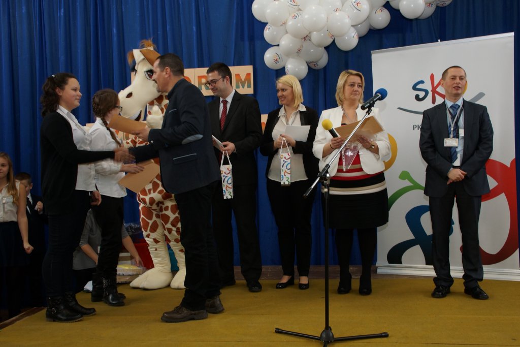 Podczas FORUM ogłoszono także wyniki międzyszkolnych konkursów plastycznych: "SKARBONKA" dla uczniów klas I-III oraz plakat "OSZCZĘDZAJ W SKO" dla uczniów klas IV – VI. Opiekunowie SKO uczestniczący w wydarzeniu otrzymali z rąk Pani Dyrektor Bożeny Lasockiej certyfikaty udziału. Imprezę uświetniła swą obecnością żyrafka LOKATKA.