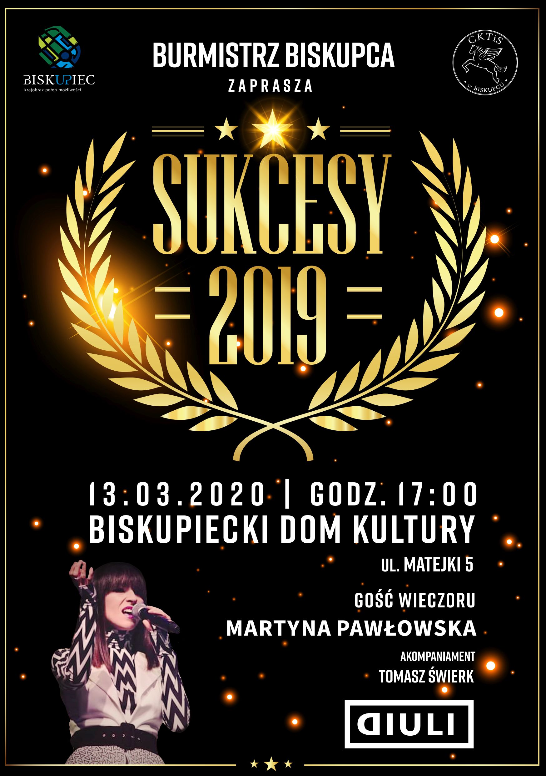 13 marca najwybitniejsi mieszkańcy gminy Biskupiec otrzymają specjalne wyróżnienia za swoje zeszłoroczne zasługi.Gala Sukcesy 2019 odbędzie się 13 marca o godz. 17:00 w Biskupieckim Domu Kultury. Będzie to już 24. rozstrzygnięcie corocznego konkursu dla osób związanych z miastem i gminą, które w szczególny sposób wyróżniają się na wielu polach. Poznamy laureatów czterech kategorii: nauka, kultura, promocja oraz specjalnej – „krajobraz pełen możliwości”. Zwycięzcy Sukcesów 2019 otrzymają pamiątkowe statuetki, ręcznie wykonane przez lokalną artystkę-Panią Ewę Różańską-Turonek. Poznamy także laureatów stypendiów naukowych przyznawanych przez burmistrza Biskupca. Gościem specjalnym Gali będzie biskupczanka, znana z udziału w telewizyjnym programie „The Voice of Poland” – Martyna Pawłowska.