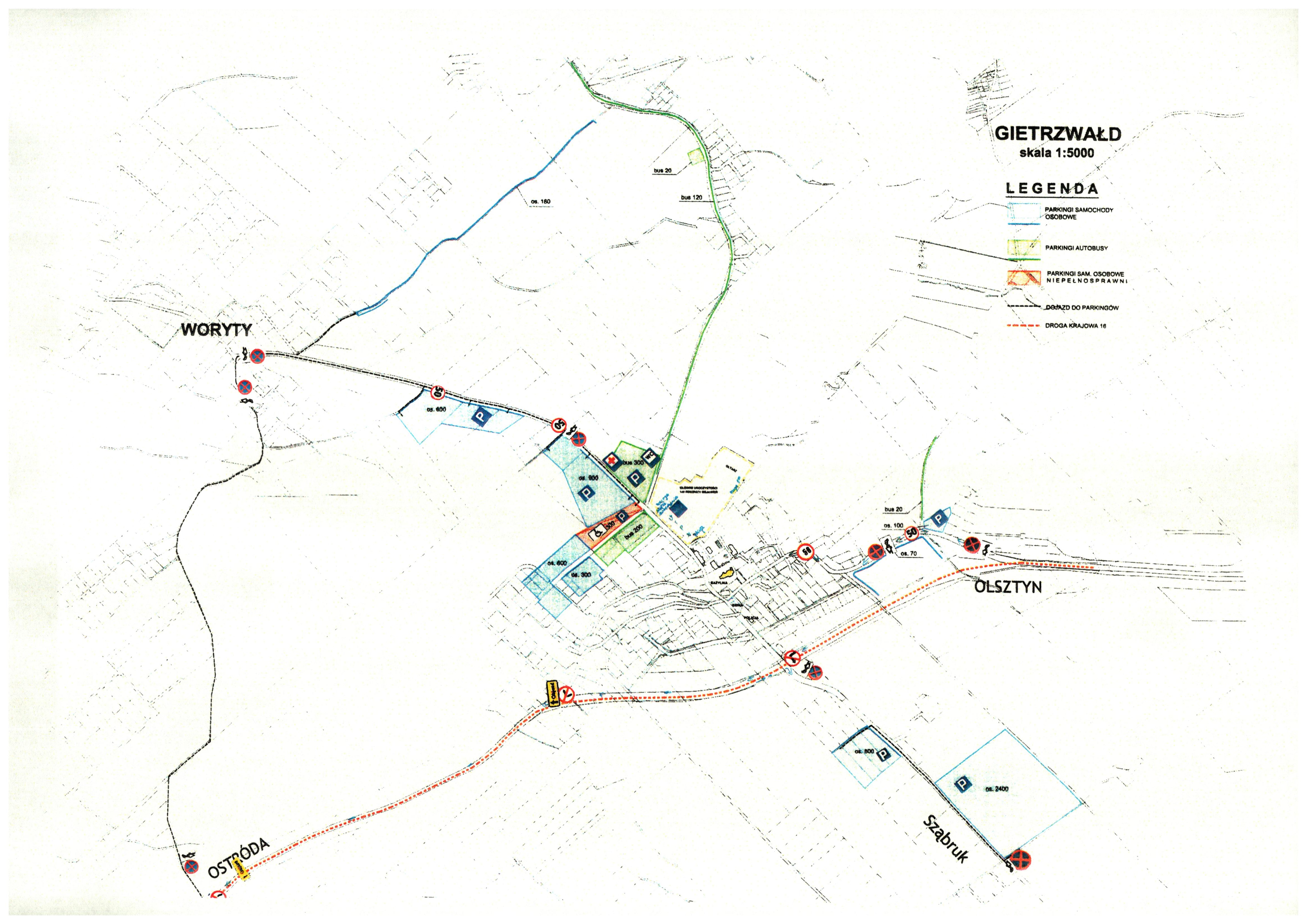 Z uwagi na spodziewaną liczbę pielgrzymów i turystów w dniach 9-10 września nastąpi reorganizacja ruchu. W niedzielę od wczesnych godzin rannych zostaną zamknięte wszystkie wjazdy do Gietrzwałdu. Nieprzejezdna będzie droga od cmentarza w Gietrzwałdzie do skrzyżowania z drogą Rentyny-Woryty (ul. Stadionowa, Aleja Gietrzwałdzka). Na obrzeżach Gietrzwałdu zostaną zorganizowane parkingi, a nad płynnością ruchu będzie czuwała policja. Dojazd do parkingów dla podróżujących od Olsztyna będzie odbywał się drogą nieutwardzoną przez Woryty (ruch jednokierunkowy), a dla jadących od strony Ostródy, środkowym zjazdem z drogi krajowej nr 16 i dalej drogą powiatową Gietrzwałd - Tomaszkowo.