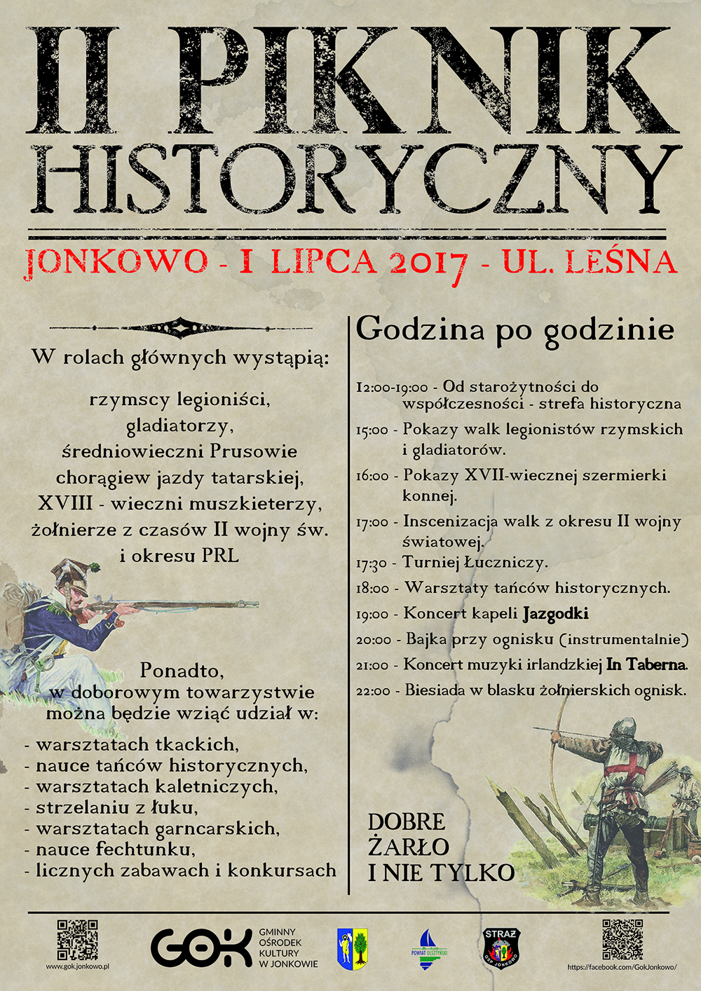 Gminny Ośrodek Kultury w Jonkowie zaprasza w sobotę 1 lipca od godz. 12:00 na II Piknik Historyczny, który odbędzie się na jonkowskich Błoniach przy ul. Leśnej.