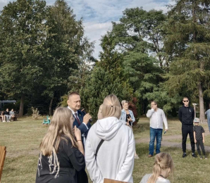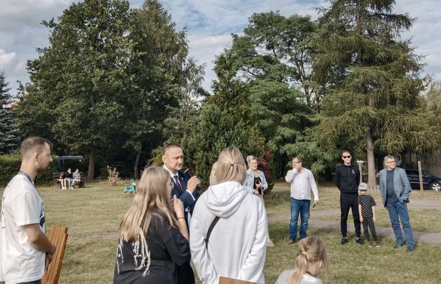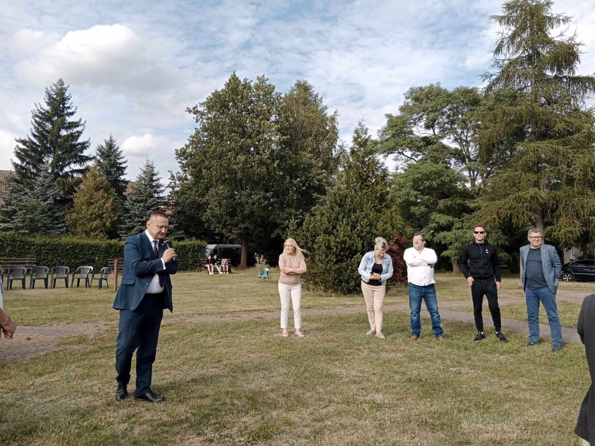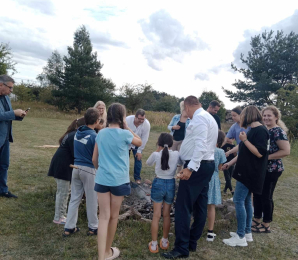 Przed Domem dla Dzieci w Gryźlinach 10 sierpnia zapłonęło ognisko, wokół którego zgromadziły się dzieci i młodzież z Polski, Ukrainy i Litwy. Byli z nimi m.in. starosta olsztyński Andrzej Abako, dyrektor Powiatowego Centrum Pomocy Rodzinie w Olsztynie Arkadiusz Paturej oraz wicedyrektor PCPR Jolanta Guszczanowska.