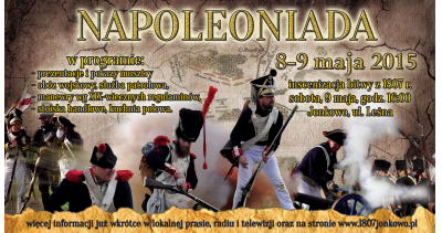 8 i 9 maja 2015 zapraszamy do Jonkowa na kolejną Napoleoniadę. W programie: pokazy musztry, obóz polowy, służba patrolowa, manewry według XIX-wiecznych regulaminów, stoiska handlowa i kuchnia polowa. W sobotę 9 maja o godz. 16:00 przy ul. Leśnej odbędzie się inscenizacja bitwy z 1807 roku. Szczegóły na: www.1807jonkowo.pl ...