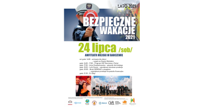Gmina Barczewo i Centrum Kulturalno-Biblioteczne w Barczewie zapraszają 24 lipca 2021 do amfiteatru miejskiego na imprezę pn. "Bezpieczne wakacje". Program: od. godz. 14.00 - animacje dla dzieci - wyspa na Stawie Młyńskim godz. 16.00 - 17.00 - Program OSP Barczewo i Policji godz. 17.00 - Anna Świętochowska - piosenki dla każdego godz....