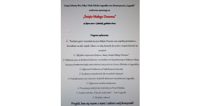W sobotę 24 lipca 2021 Grupa Odnowy Wsi, Sołtys i Rada Sołecka oraz Stowarzyszenie Ługwałd zapraszają serdecznie na "Święto Małego Dzwonu", które wystartuje o godz. 16:00 przy małym dzwonie w centrum wsi. Potem impreza przeniesie się na plac wiejski, w programie przewidziano liczne konkursy, animacje, zabawy dla dzieci, a także...
