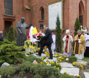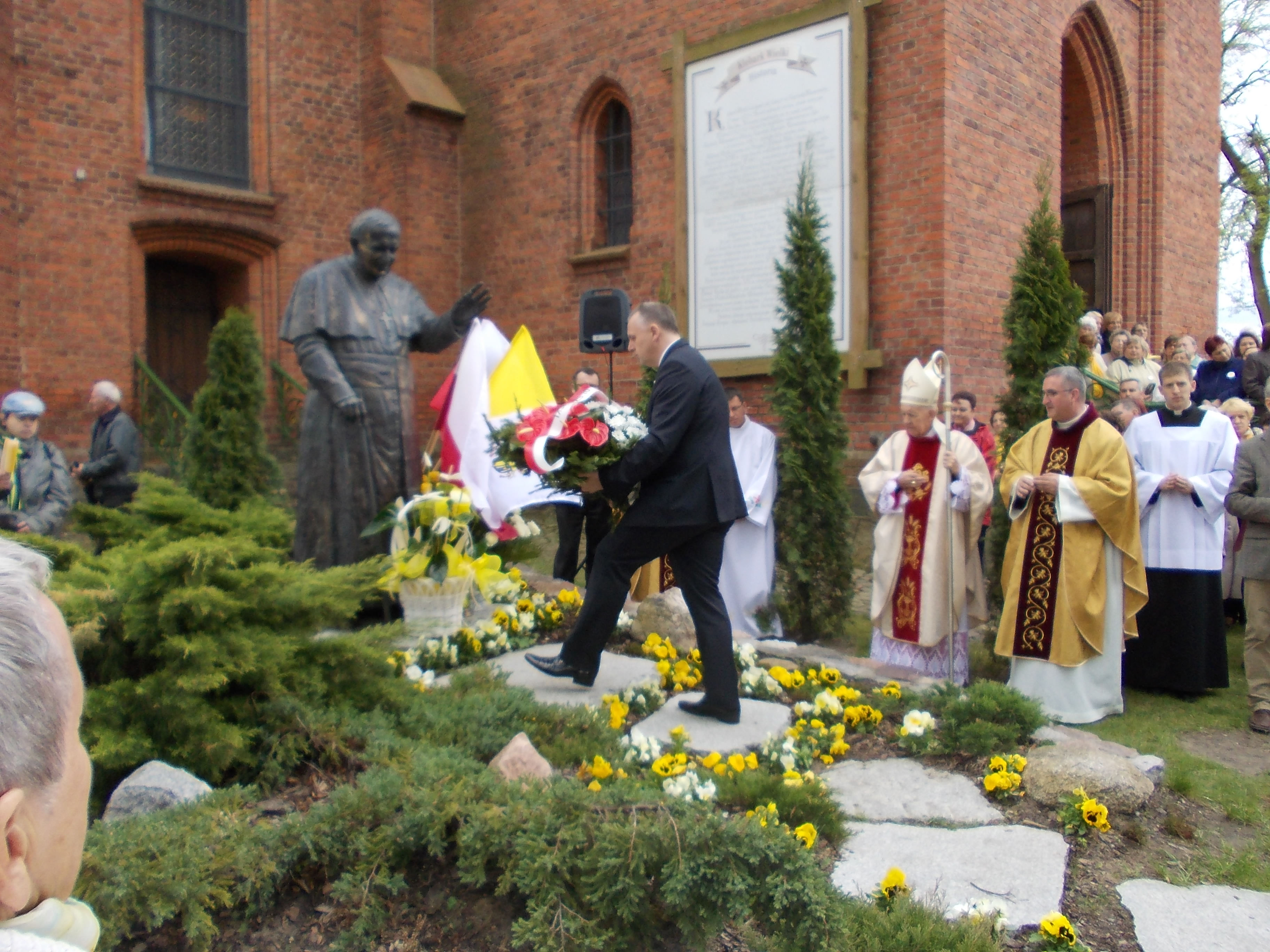 Uczestnicy nabożeństwa złożyli kwiaty pod pomnikiem Jana Pawła II, który usytuowany jest przed kościołem w Klebarku Wielkim. Tego dnia wszyscy wspominali postać już świętego.