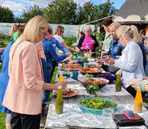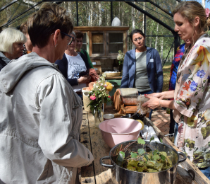 Kolejne dwa dni to były wycieczki po powiecie olsztyńskim. W piątek panie wyruszyły po szlaku zmysłowych podróży kulinarnych Warmingu. Odwiedziły ekologiczne gospodarstwa, posmakowały lokalnych przysmaków, spróbowały chleba własnej roboty, serów, ekologicznych warzyw, lawendowych ciasteczek. Miały też okazję zobaczyć,jak się przetwarza runo owcze i jak wytwarza się naturalne kosmetyki czy przetwory owocowe. W sobotę po południu gościły w Bukwałdzie, gdzie wzięły udział w warsztatach – przygotowywały naturalne kosmetyki do domu, malowały obrazy, a także spotkały się z Wiedźmuchami. To grupa artystyczna, stanowiąca jednocześnie wsparcie dla kobiet.