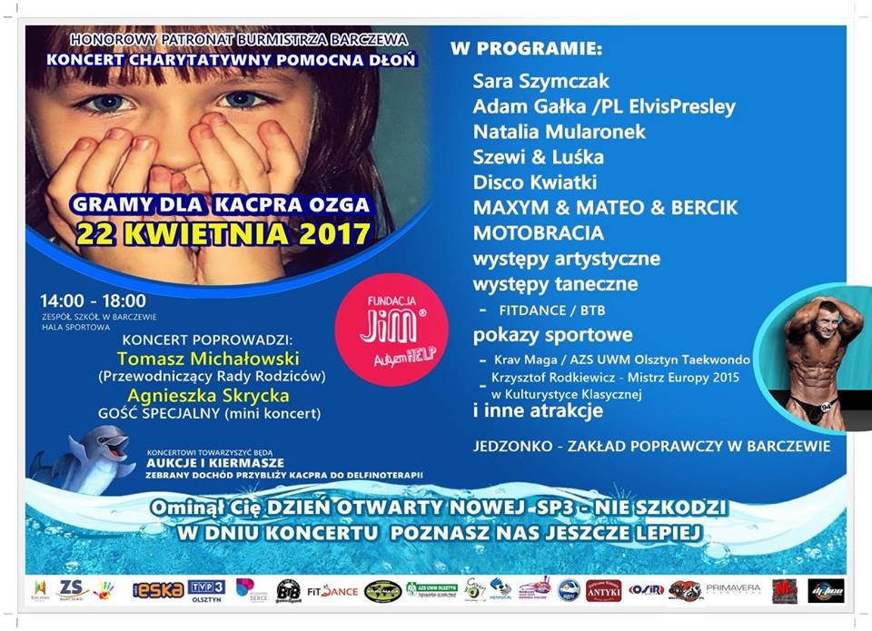 Gmina Barczewo zaprasza w sobotę 22 kwietnia na koncert charytatywny "Pomocna dłoń", który odbędzie się w Zespole Szkół w Barczewie.