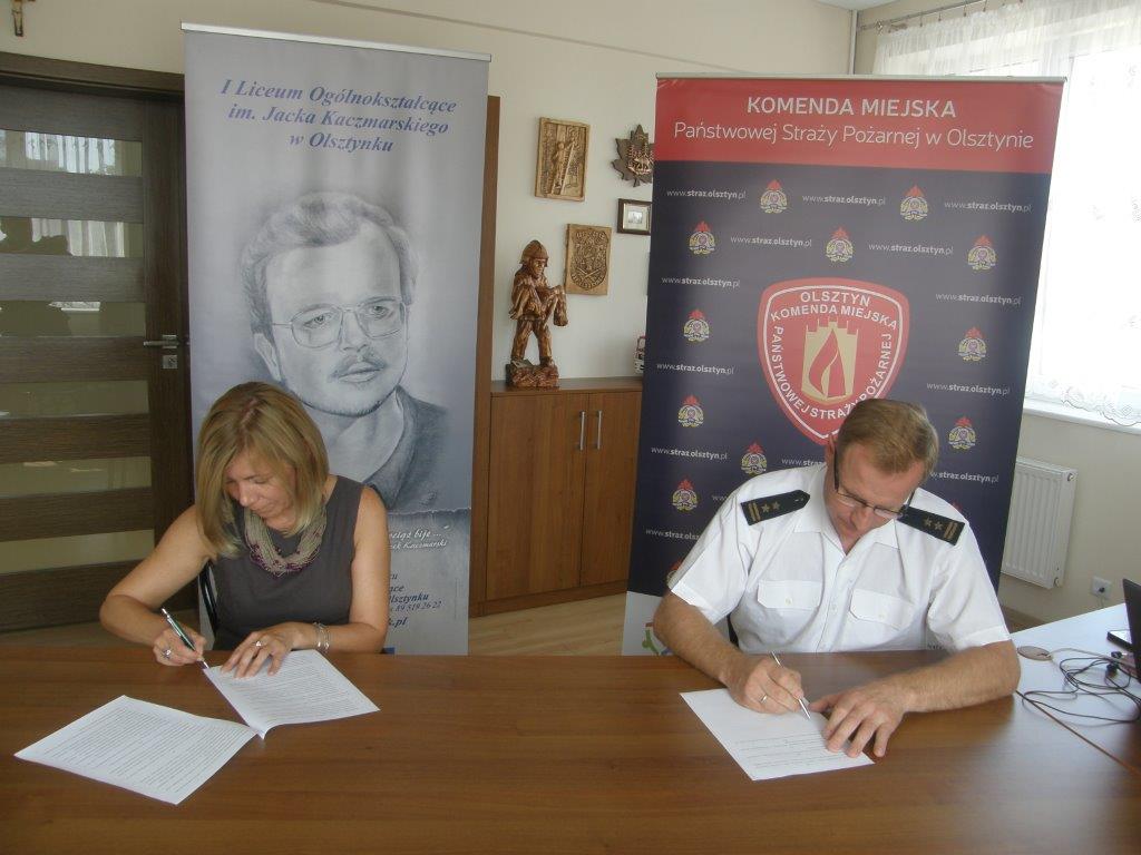 Uczniowie klasy mundurowej z I Liceum Ogólnokształcącego w Zespole Szkół w Olsztynku nadal będą czerpać z wiedzy i doświadczenia zawodowych funkcjonariuszy. 13 czerwca dyrektor szkoły Ewa Orłowska podpisała w tej sprawie porozumienie o kontynuacji współpracy z Komendantem Miejskim Policji w Olsztynie mł. insp. Mieczysławem Wójcikiem, Komendantem Miejskim Państwowej Straży Pożarnej bryg. Andrzejem Górzyńskim i dyrektorem Izby Celnej w Olsztynie mł. insp. Dariuszem Postkiem.