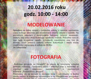 Miejski Ośrodek Kultury w Jezioranach zaprasza 20 lutego 2016 roku na "Kulturalną sobotę". W programie rodzinna przygoda z fotografią i modelarstwem.