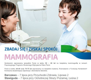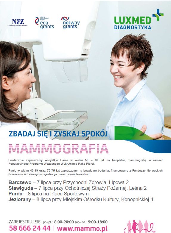 Wykrywania Raka Piersi" współfinansowanego z funduszy EOG i Norweskiego Mechanizmu Finansowego. Wymagane jest SKIEROWANIE LEKARSKIE od lekarza dowolnej specjalizacji. Więcej Informacji o badaniach oraz wzór skierowania na stronie - link.
