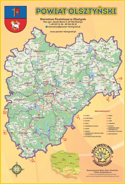 Mapa powiatu olsztyńskiego - wszelkie prawa Wydawnictwo PiK