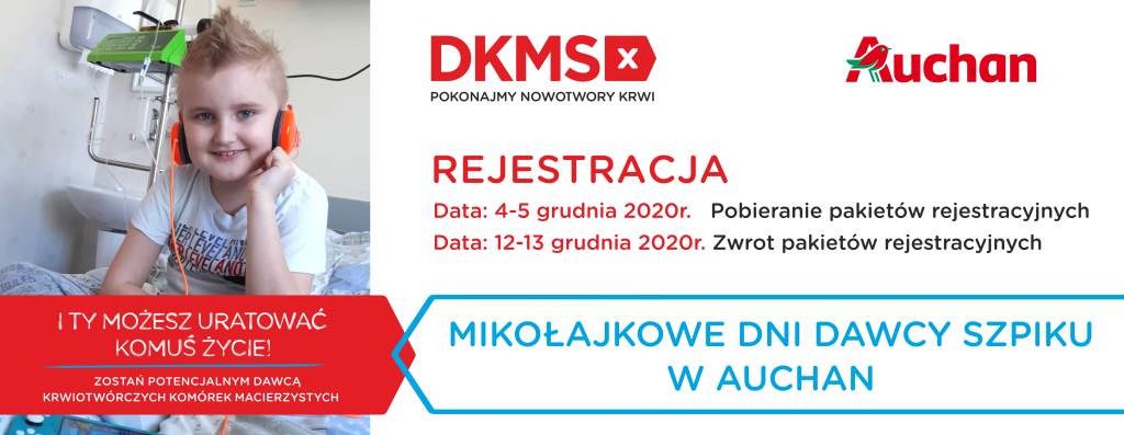 W dniach 4-5 grudnia m.in. w olsztyńskim hipermarkecie Auchan, w nowej i bezpiecznej odsłonie, odbędą się Mikołajkowe Dni Dawcy Szpiku. Organizatorzy mają nadzieję odnaleźć niespokrewnionego dawcę szpiku m.in. dla 9-letniego Jasia, który walczy z lekooporną białaczką.Do akcji Fundacji DKMS dołączyło aż 91 sklepów z całej Polski, w tym hipermarket Auchan w Olsztynie. Pomysł Mikołajkowych Dni Dawcy Szpiku Auchan zrodził się 9 lat temu. Wówczas inny pacjent potrzebował wsparcia „bliźniaka genetycznego”. Od tego czasu pracownicy sklepów angażują się w pomoc chorym na nowotwory krwi, rejestrując nowych, potencjalnych dawców szpiku. Podczas tegorocznej 16. edycji akcji wolontariusze z Auchan będą zachęcać swoich klientów do dołączenia do bazy dawców szpiku Fundacji DKMS.