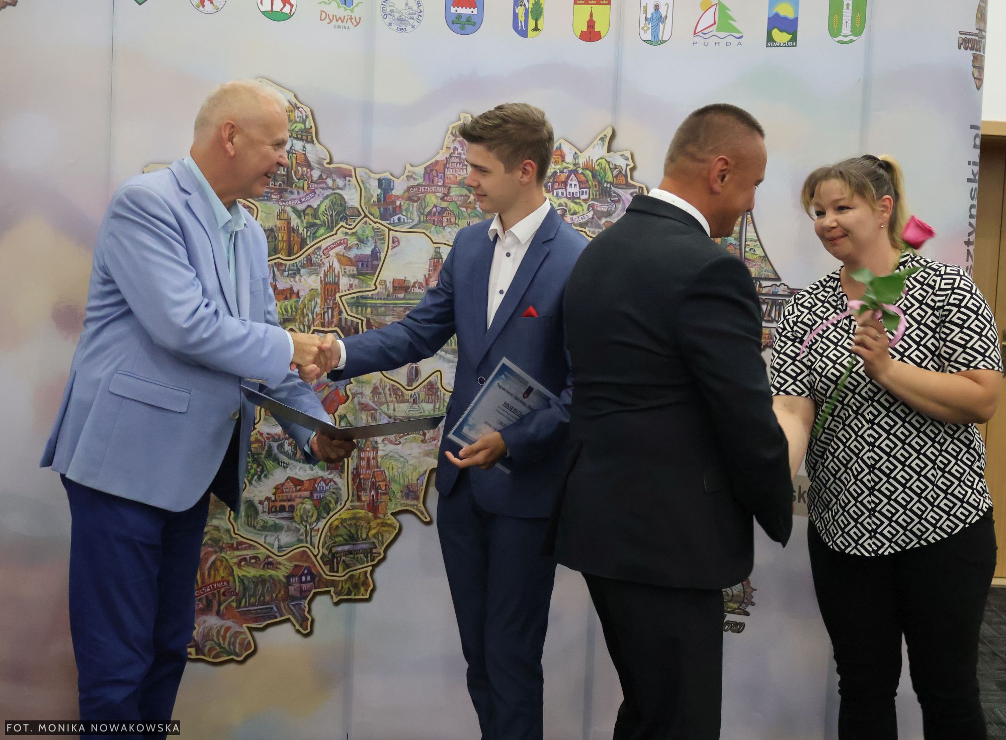 - Jesteście najlepszymi z najlepszych. Możecie być wzorem dla swoich kolegów i motorem do działań. Doceniam Waszą pracę i osiągnięcia, podobnie jak cały Zarząd i Rada Powiatu. Dlatego też inwestujemy środki w rozwój bazy lokalowej naszych szkół; przed nami budowa hali sportowej w Olsztynku, siedziby szkoły muzycznej w Wadągu i bursy w Smolajnach. Wiemy, że w dobrych warunkach łatwiej i przyjemniej zdobywać wiedzę - mówił Andrzej Abako, starosta olsztyński. Gratulacje wyróżnionym uczniom złożył także wicestarosta Artur Wrochna.