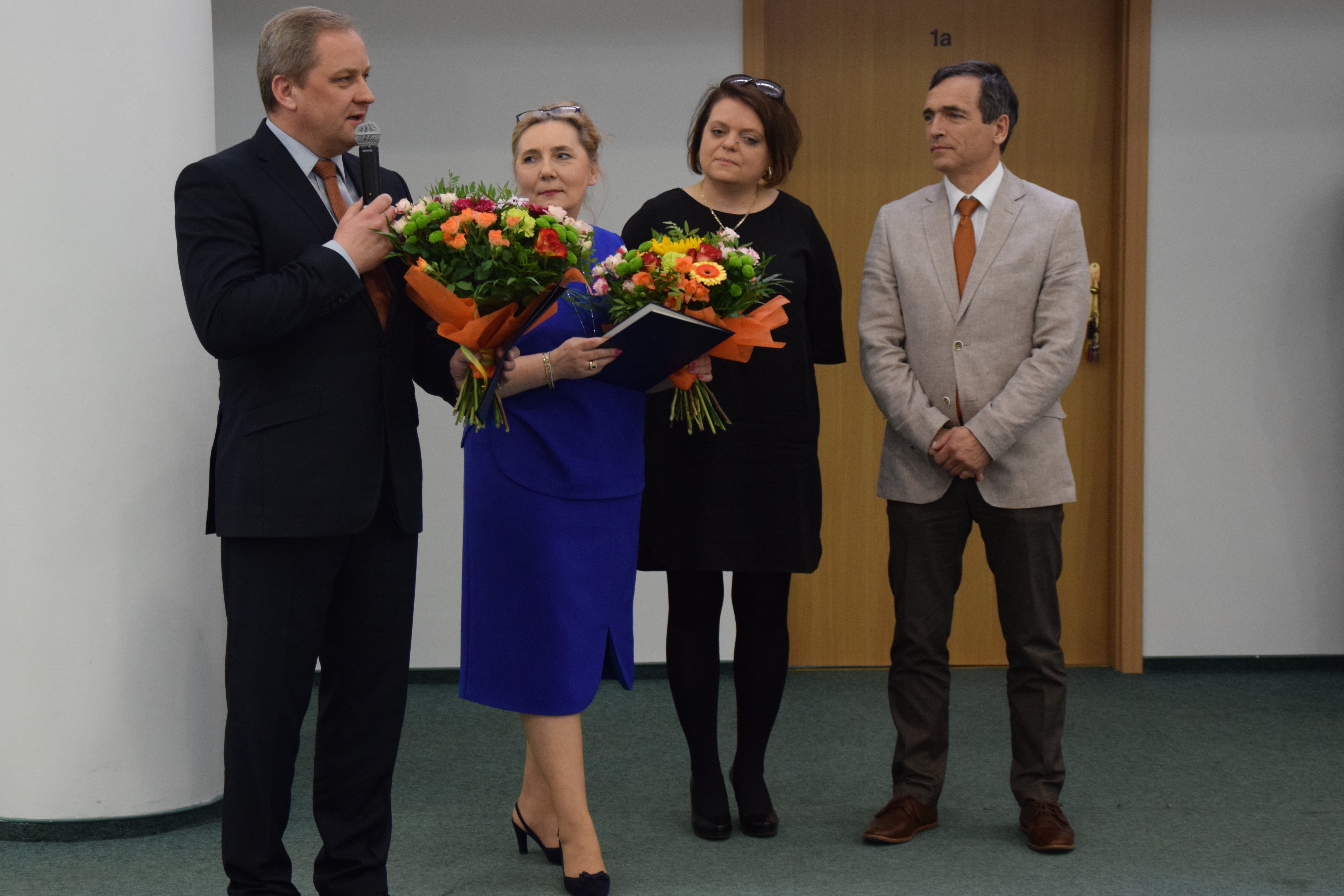 Posiedzenie radnych rozpoczęło się miłymi słowami skierowanymi do kończącej pracę na stanowisku dyrektora Powiatowej Poradni Psychologiczno-Pedagogicznej Elżbiety Hermanowicz i insp. Mieczysława Wójcika, który niedawno ustąpił z funkcji Komendanta Miejskiego Policji w Olsztynie. Starosta olsztyński Małgorzata Chyziak i przewodniczący Rady Powiatu w Olsztynie Jerzy Laskowski podziękowali honorowym gościom sesji za ich pracę na rzecz mieszkańców powiatu.