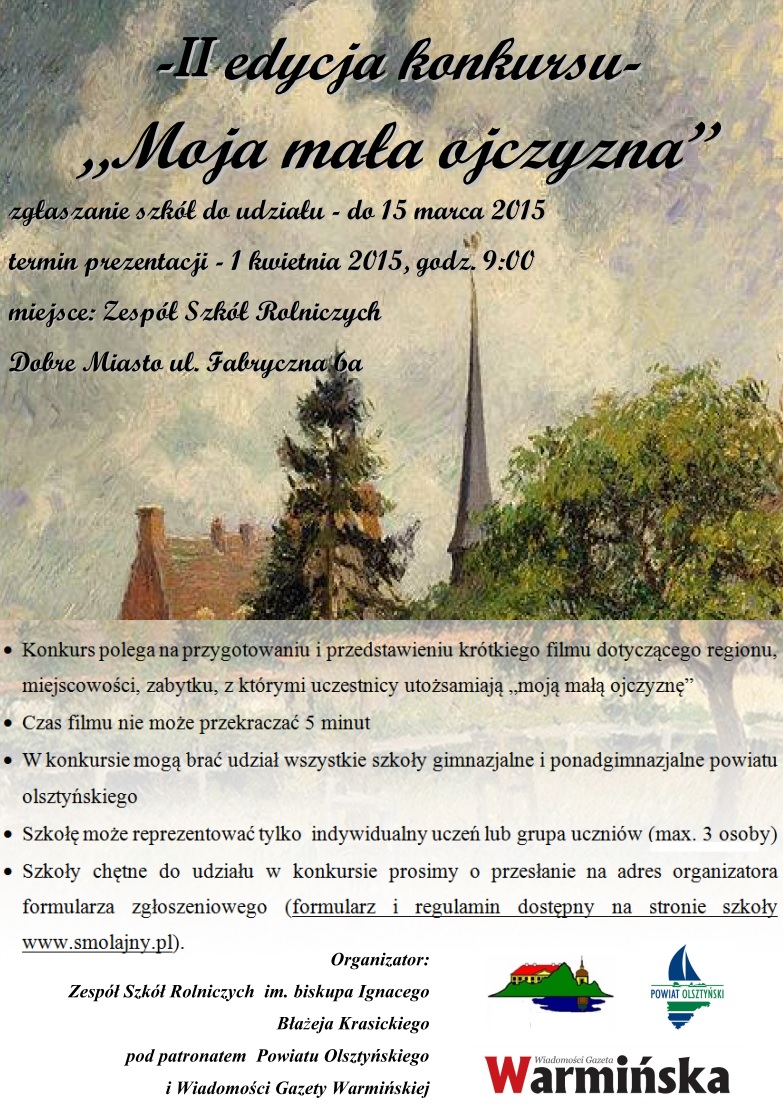Pomysł kształtowania więzi z regionem zainicjowała dyrekcja Zespołu Szkól Rolniczych w Smolajnach. 1 kwietnia w siedzibie szkoły w Dobrym Mieście młodzież za pomocą multimediów zaprezentuje się w II edycji konkursu filmowego "Moja Mała Ojczyzna".