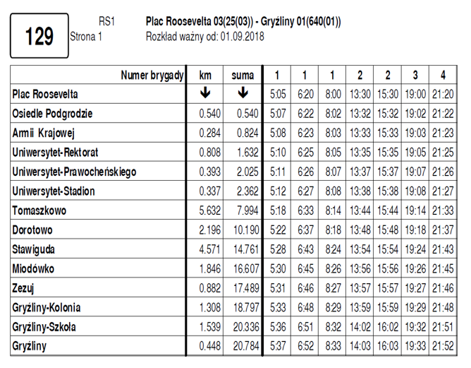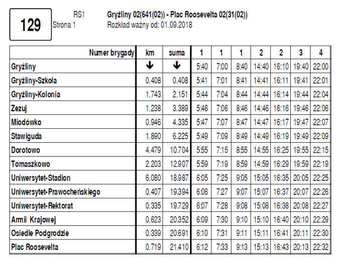 Z pewnością ułatwi on wszystkim dojazd pomiędzy Olsztynem a poszczególnymi miejscowościami Gminy Stawiguda. Autobusy będą kursować z Placu Roosevelta w Olsztynie do Gryźlin. Po drodze zatrzymają się na wszystkich przystankach w Olsztynie, a także na następujących przystankach w gminie Stawiguda: Tomaszkowo, Dorotowo, Stawiguda, Miodówko, Zezuj i Gryźliny. Kursować na tym odcinku będzie linia nr 129.