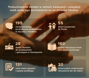 - Cieszę się, że dzięki pomocy samorządów, przedsiębiorców oraz organizacji pozarządowych udało nam się dotrzymać danego w styczniu słowa i zapewnić prawie 200 osobom ewakuowanym z Donbasu mieszkania i pracę. Polska będzie dla Was gościnnym i bezpiecznym domem, Waszym nowym miejscem na Ziemi. Bo przecież jesteście u siebie – mówiła Minister Teresa Piotrowska. Szefowa MSW podziękowała wszystkim zaangażowanym w pomoc ewakuowanym. - Byli w szczególnie trudnej sytuacji, zostali ewakuowani ze strefy działań wojennych. To było coś więcej niż ewakuacja, to egzamin solidarności, gościnności i sprawnej organizacji.